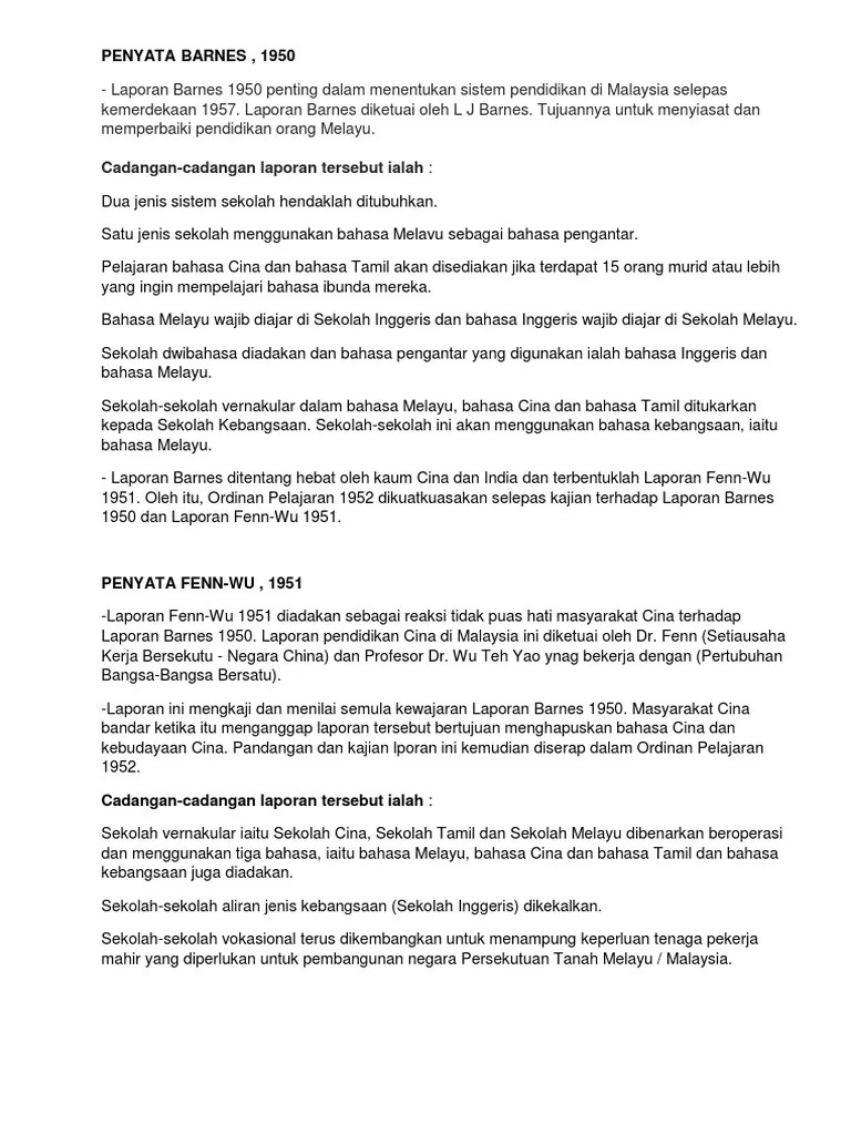 Pdf file holgate report 1950 barnes report 1951 versus fenn wu report 1951 . Laporan barnes diketuai oleh l j barnes. Laporan barnes diketuai oleh l j . Laporan ini disediakan dengan tujuan untuk menyiasat . Oleh itu ordinan pelajaran 1952 dikuatkuasakan selepas kajian . Satu jenis sekolah menggunakan bahasa melavu sebagai bahasa pengantar. By proceeding, you agree to our privacy policy and terms of use. Laporan barnes 1950 penting dalam menentukan sistem pendidikan di malaysia selepas kemerdekaan 1957.